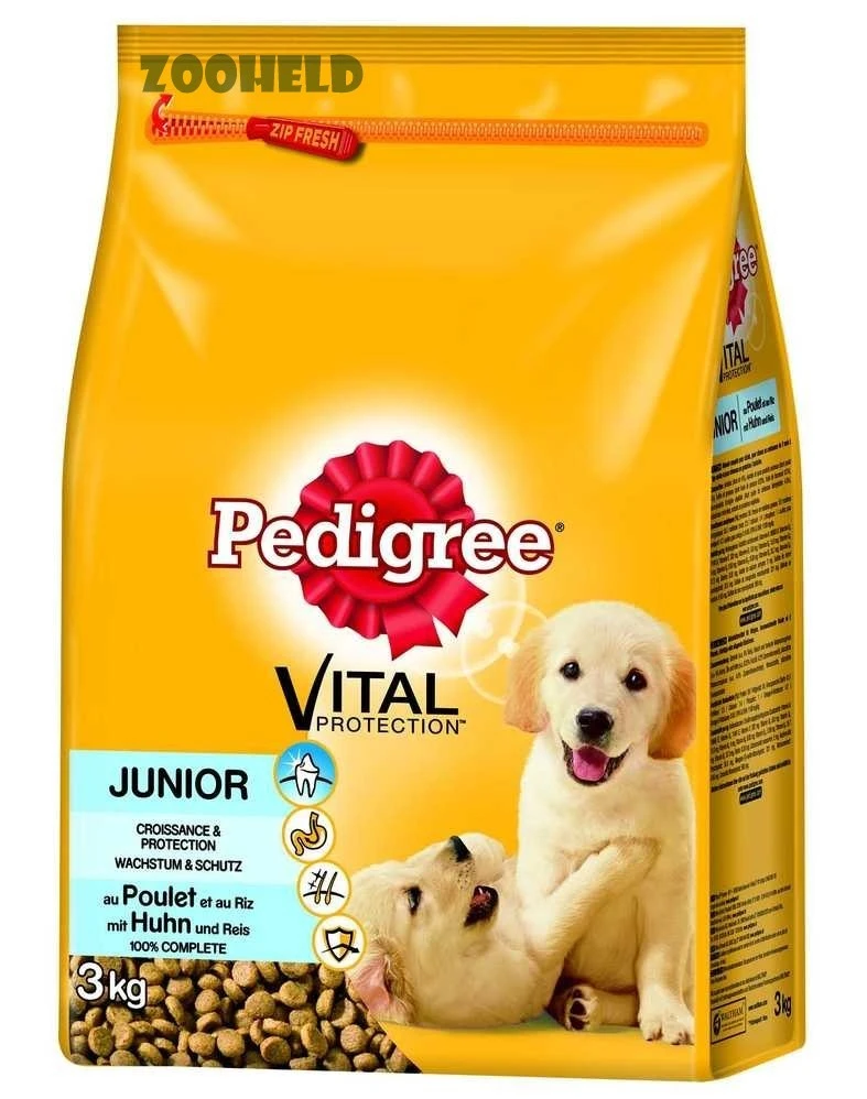 Pedigree Junior ist ein gesundes und leckeres Futter, das Ihrem Hund sicherlich schmecken wird. Bei der Herstellung wird darauf geachtet, dass nur natürliche Zutaten zum Einsatz kommen, die Ihr Tier auch wirklich für ein vitales und gesundes Leben braucht. Pedigree Junior ist ein Futter, das Ihren Hund mit allen wichtigen Vitaminen und Mineralstoffen versorgt. Die schmackhafte und hochwertige Nahrung enthält leckeres Fleisch das Ihrem Hund sicherlich schmeckt. Hier können Sie sicher sein, dass auch die Zutaten enthalten sind, die auf der Verpackung stehen. Dank der guten Qualität enthält das Futter eine ausgewogene Menge an Eiweiß und Fett. Ihr Hund wird von der abgerundeten Mischung profitieren und lange vital und gesund bleiben. Ihr Hund wird dieses Produkt lieben und es wird ihm sichtbar schmecken. Probieren Sie auch die weiteren feinen Geschmacksrichtungen die Sie in unserem Onlineshop günstig finden können. Stellen Sie den Hund langsam auf neues Futter um, damit sich die Verdauung anpassen kann. Auch ein Snack hat Kalorien, deshalb sollte dieser bei der täglichen Futterration mitberechnet werden.